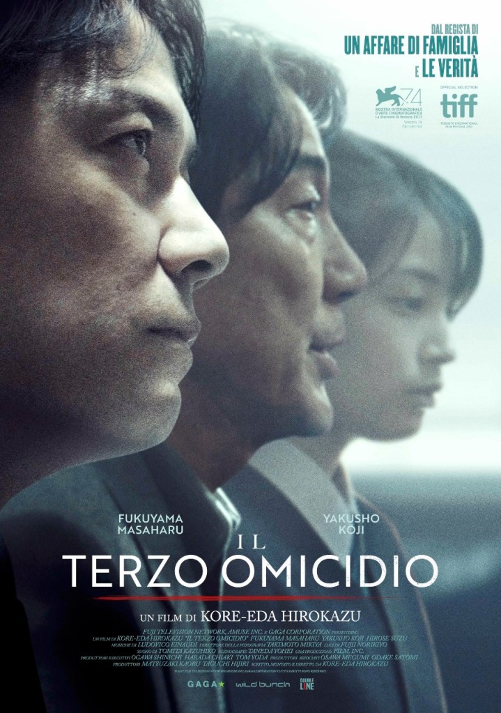 Il Terzo Omicidio è girato da Kore’eda nel 2017, dopo gli apprezzati Little Sister (2015) e Ritratto di Famiglia con Tempesta (2016), e prima della Palma d’Oro di Cannes per Un Affare di Famiglia (2018). Rispetto a questi titoli, che insieme a altri più datati si soffermano su rapporti familiari come minimo particolari, questo giallo atipico tocca l’argomento solo marginalmente, e si concentra su domande esistenziali, filosofiche e etiche.