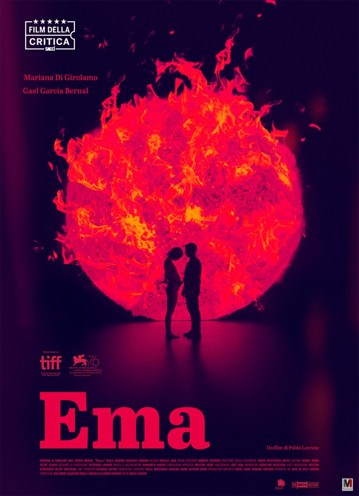 Ema non ci si trova nelle regole della sua città, nelle istituzioni, negli usi, nelle persone, nei semafori; parla poco, quasi mai, piuttosto balla ogni volta che può, e quando balla il suo corpo diventa un’antenna erotica che spara fosforo bianco ad altezza uomo, e tutto quello che tocca lo incendia di sensualità e di rivolta.