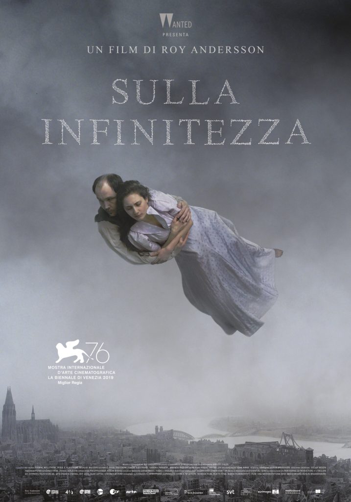 Anche la bellissima sequenza scelta sia per il prologo che per la locandina, e che tra l’altro contiene l’unico movimento di macchina del film, ha a che fare con il senso del “dopo”. Due amanti che ricordano i dipinti fantastici di Marc Chagall, si librano in volo sulle rovine di una città rasa al suolo da un bombardamento. Questa città che alcuni riconoscono in Colonia, ma che può ricordare tranquillamente Dresda, non sembra molto diversa dalla stessa città sorvolata dallo stormo di bombardieri che chiude il precedente film del 2007 You, the Living.
